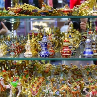 Browse the bustling Gold Souk and Dates Market, with its stacks of fresh dates and sweets
